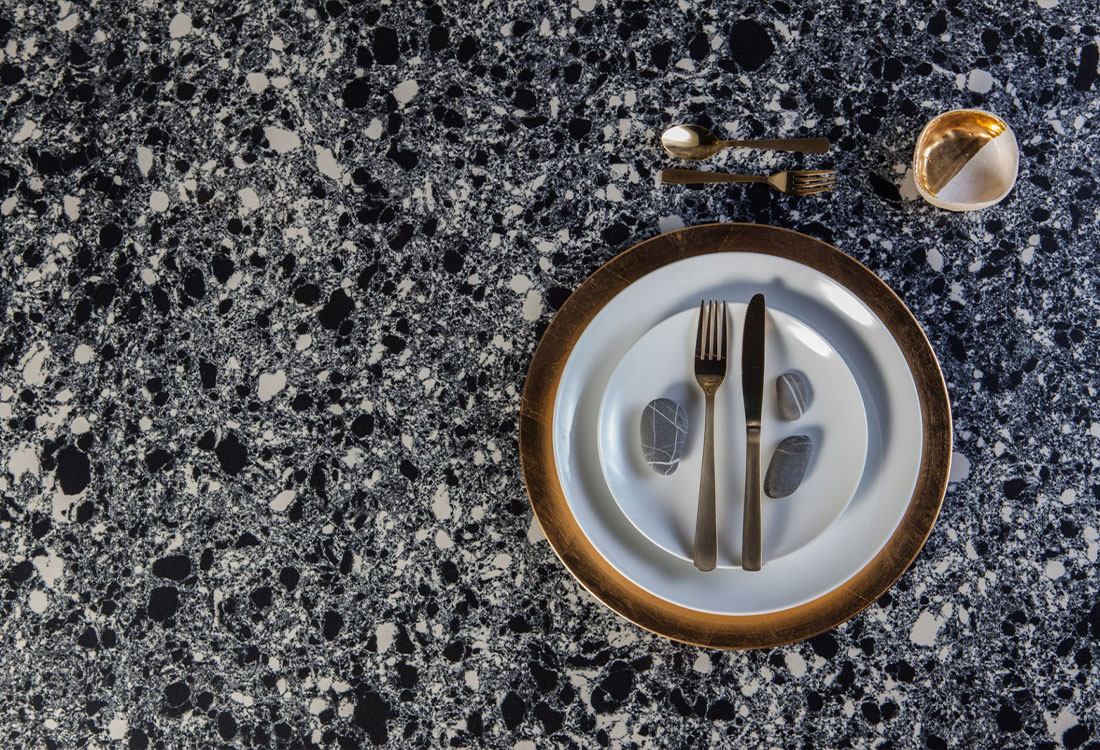 Questa tipologia di lastre, di recente creazione, è composta da inerti da riciclo pre-consumo capaci di garantire una resa estetica unica con ampia facilità di lavorazione. Inoltre, assicurano i più elevati standard igienici, rendendo questi elementi ideali in qualsiasi cucina moderna.